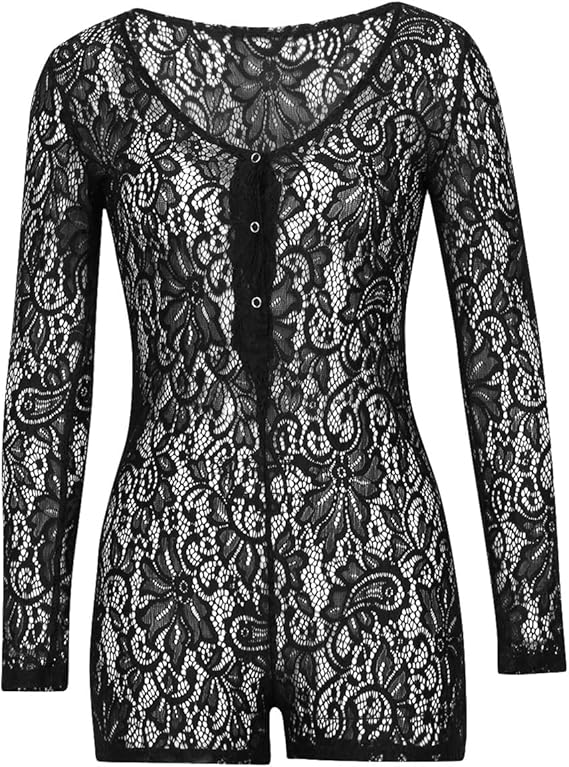 Amazon Com Women S Sexy Lace Short Jumpsuit See Through Deep V Neck One Piece Romper Bodycon Party Clubwear Onesie Pajamas Clothing Shoes Jewelry